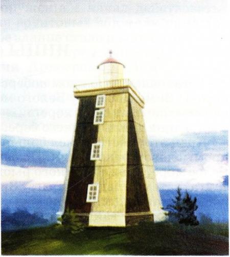 В августе 1878 года комиссия, принимавшая от строителей маяк, отметила в акте: “Маяк деревянный осьмиугольный с металлическим фонарем. Башня желтая, высотой от основания 61 фут, а от уровня моря 349 футов, фонарь свинцового цвета. Построено правильно, прочно. Действие осветительного аппарата, освещавшегося керосином, найдено правильным и открыто 1 августа 1878 года. Для смотрителя и прислуги выстроены дом, баня, кладовая, колодец, ворот для подъема тяги...” [16].
